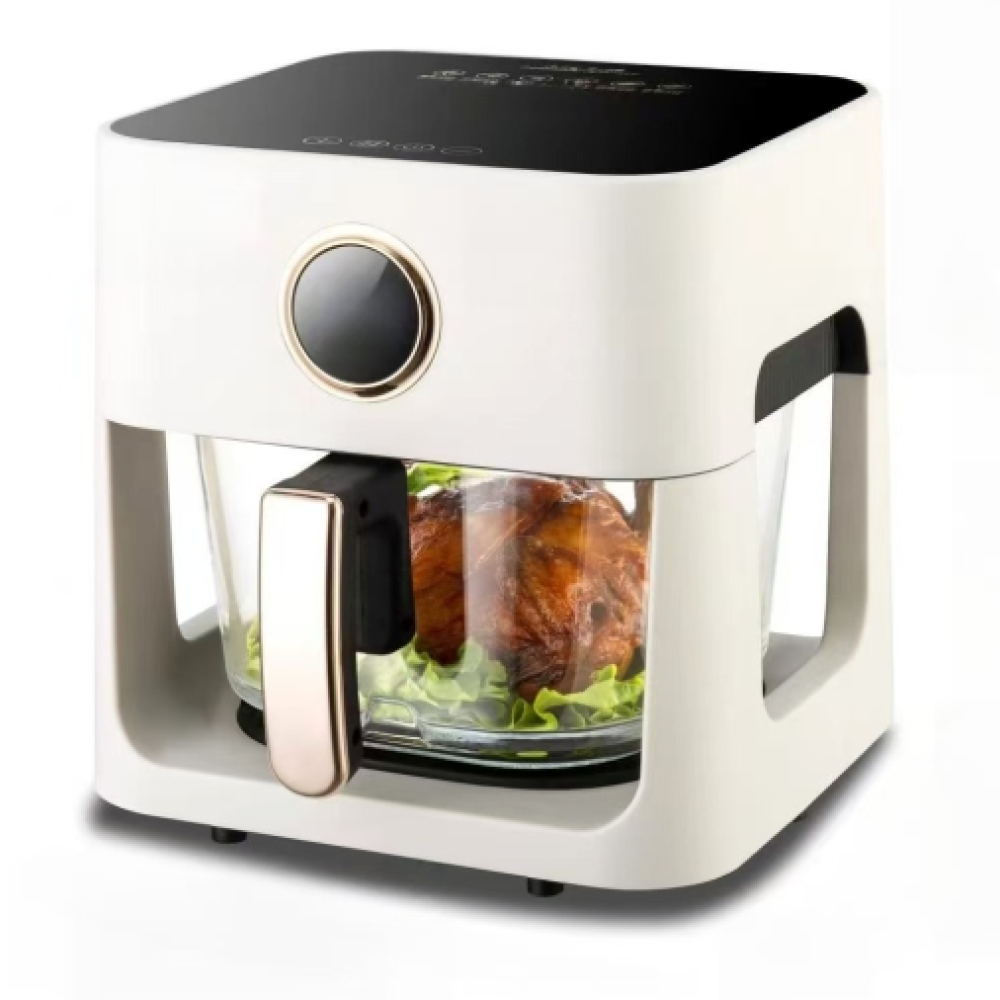 Аэрогриль, 1200 Вт, стеклянная чаша из закаленного стекла 4л, таймер на 1-60 мин, регулятор температуры 80-200С, сенсорное управление, большой LED дисплей, автоматическое отключение нагрева при извлечении чаши, защита от перегрева, цвет белый, длина шнура 80см