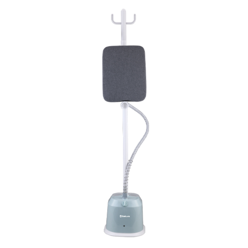 Отпариватель универсальный, максимальная мощность: 2100 Вт, съемный резервуар для воды 2.8 л, до 100 минут непрерывной работы, пластиковая телескопическая стойка, готовность к работе через 45 секунд после включения, два режима подачи пара: 25г/мин и 40г/мин, максимальная температура пара: 100 °C, высота в собранном виде: 1,55м, гибкий шланг для подачи пара, длина шнура питания: 1,7м, размер устройства в упаковке: 385*322*345мм. Световой индикатор работы. В комплекте: отпариватель, гладильная доска, термостойкая защитная рукавица, универсальная насадка для отпаривания, съемная щетка для насадки, пластиковая телескопическая стойка. Цвет: белый / голубой.