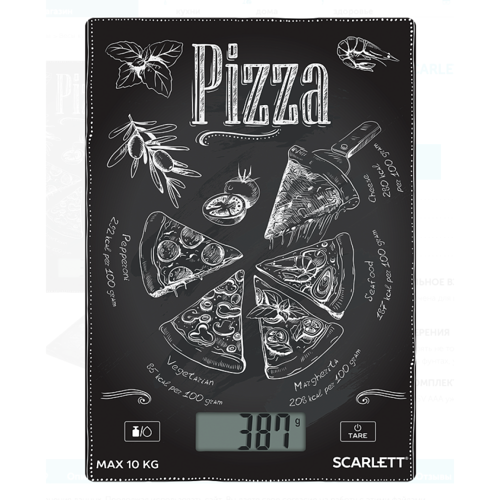 Платформу весов Scarlett SC-KS57P66 украшает современный принт, благодаря которому они станут заметным акцентом на вашей кухне. Устройство выдерживает нагрузку до 10 кг, цена деления составляет всего 1 г, так что вы сможете использовать эту модель и в период сезонных заготовок, и при ежедневном приготовлении блюд.