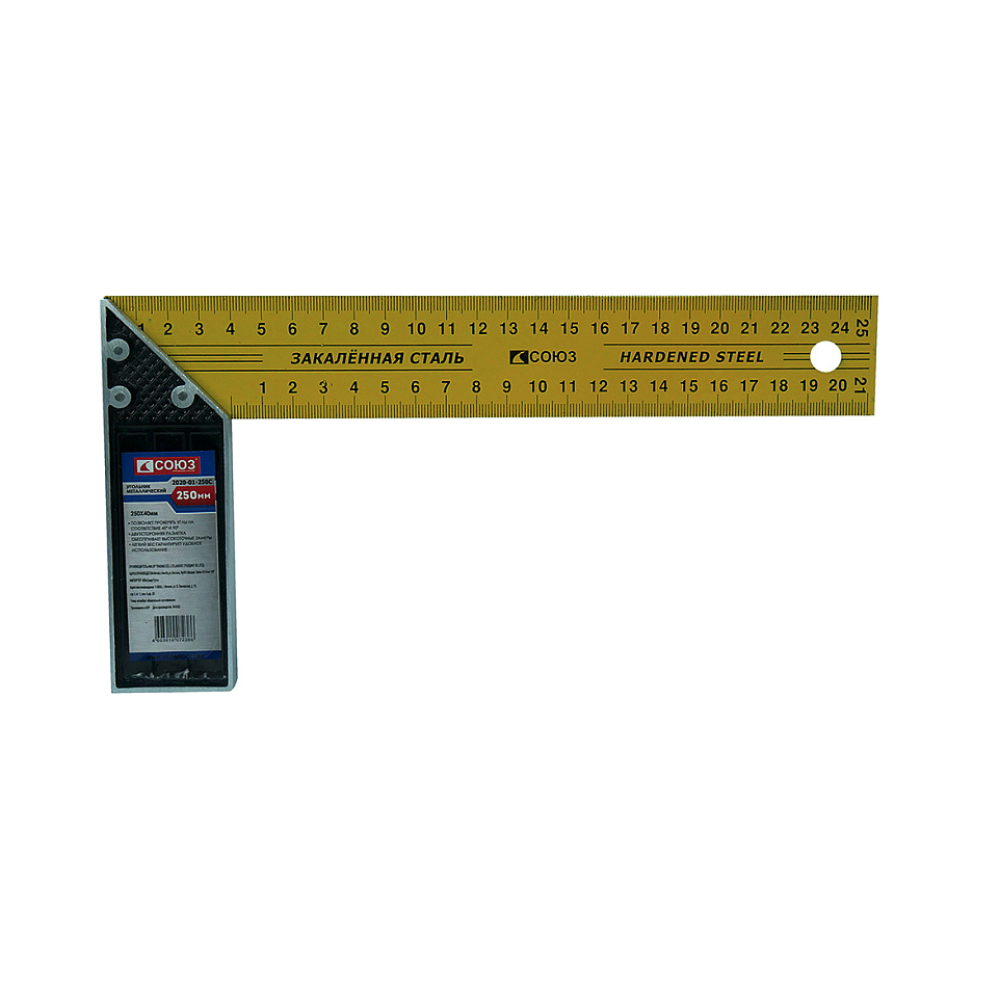 Угольник обладает прочностью и долговечностью, так как полотно изготовлено из закаленной нержавеющей стали, а рукоятка из алюминия.