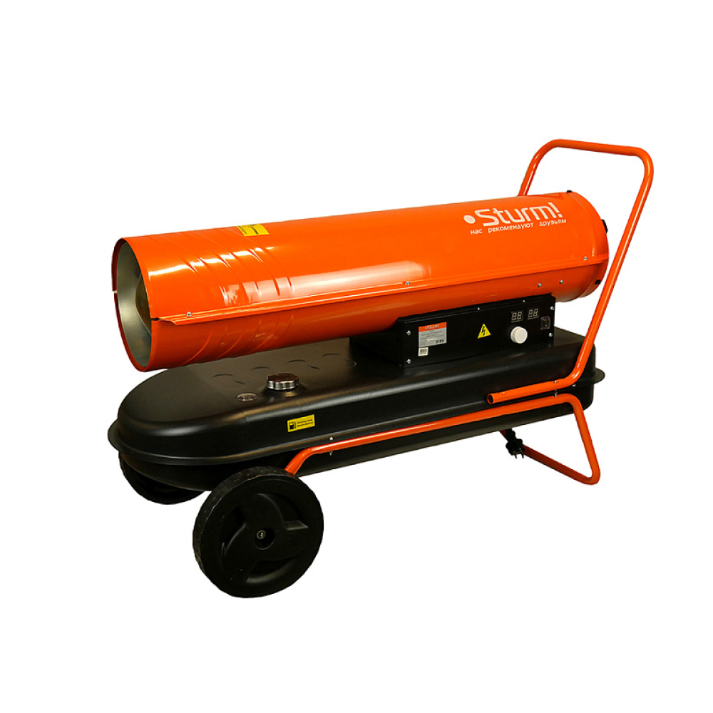 Тепловая дизельная пушка Sturm! DKH50 – мощный обогреватель с объемом бака 43 литров. Форма корпуса моделирует направленный горячий поток воздуха при обогреве нежилых помещений и открытых рабочих пространств даже в самых суровых климатических условиях. Уровень КПД прибора близок к 100%, а тепловая мощность достигает 50 кВт. Тепловая пушка оснащена встроенным термостатом повышенной чувствительности для работы в автономном режиме с поддержанием заданной температуры и цифровым дисплеем - указателем температуры. Теплоотражающий стальной экран поддерживает равномерный нагрев. Максимальная безопасность и контроль обеспечивается с помощью электронной платы управления, температурного датчика.
