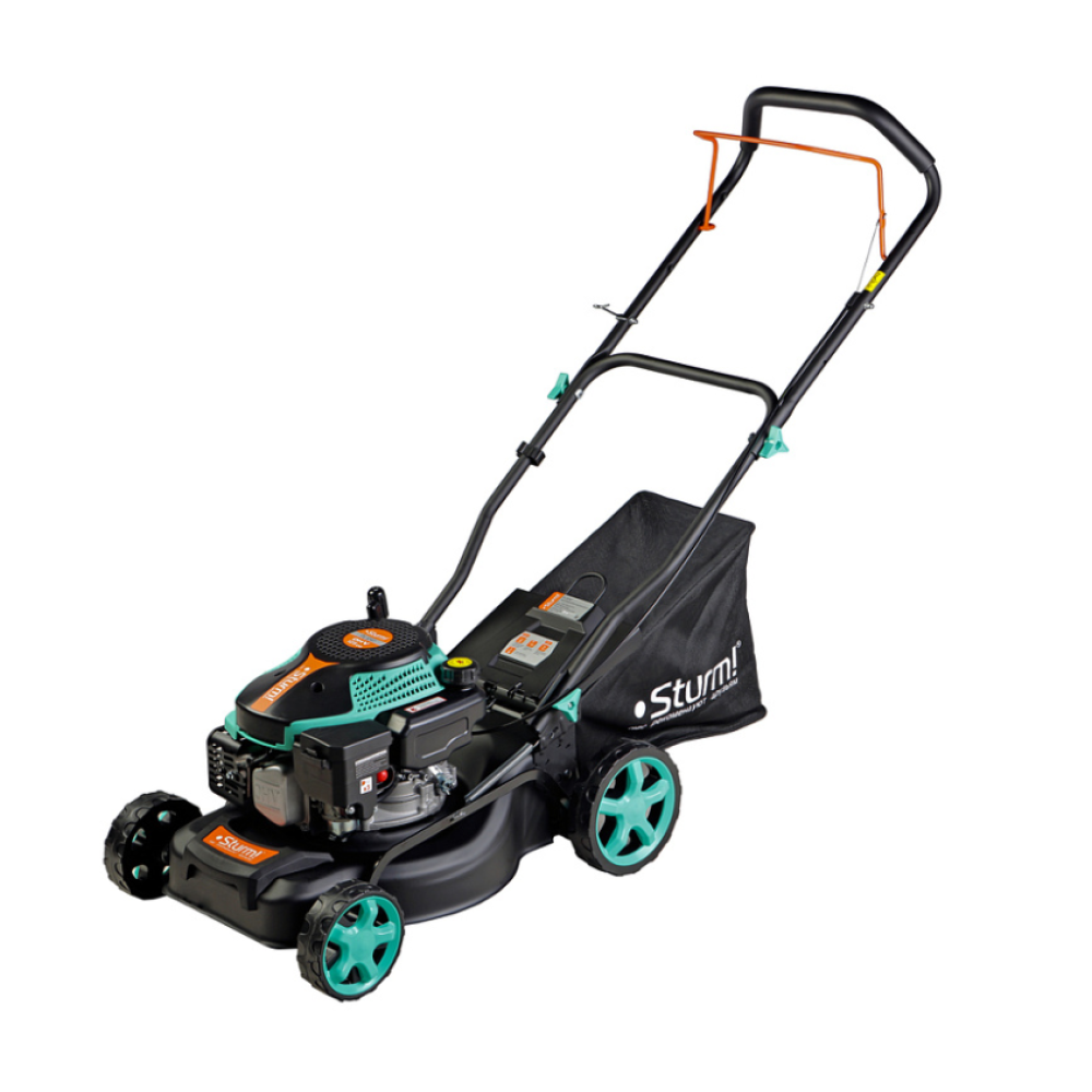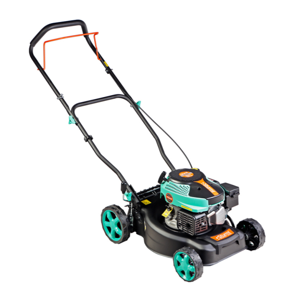 Для удобства хранения ручки могут складываться поверх газонокосилки, что делает хранение компактным и идеально подходит для небольшого садового сарая, гаража или при транспортировке в автомобиле.