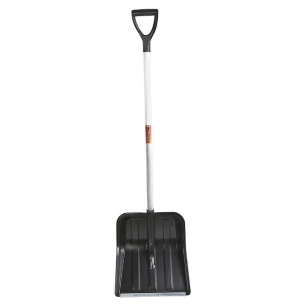 Ковш лопат изготовлен из полипропилена. Благодаря качественному материалу получено изделие высокой прочности. Кромка лопаты защищена специальным алюминиевым профилем с небольшим закруглением по краю. Это позволяет легче убирать снег, где территория не очень ровная. Поверхность лопатного ковша гладкая, за счет постоянного контроля за состоянием оснастки, что значительно снижает вероятность налипания снега. Оптимальные габариты ковша лопаты с усиленными рёбрами жёсткости делают её одной из самых востребованных снегоуборочных лопат и позволяют использовать её для уборки любого снега. Черенок изготовлен из алюминиевого профиля, что позволило значительно снизить вес лопаты в сборе. Лопатный черенок заканчивается эргономической и крепкой V-образной ручкой, изготовленной так же из полипропилена, позволяющей удобно хранить лопату, когда она не используется. Соединение ковша лопаты с черенком происходит с помощью заклёпки