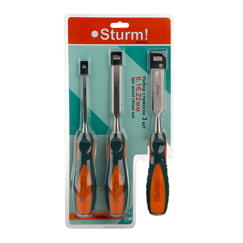 1063-04-S3 Набор стамесок 6, 16, 22 мм ДВУХКОМПОНЕНТНЫЕ РУКОЯТКИ, Sturm!