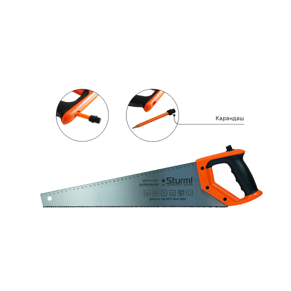 Высокоточная геометрия прочных закалённых зубьев позволяет обеспечивать скорость распила на 50% быстрее обычных ножовок.