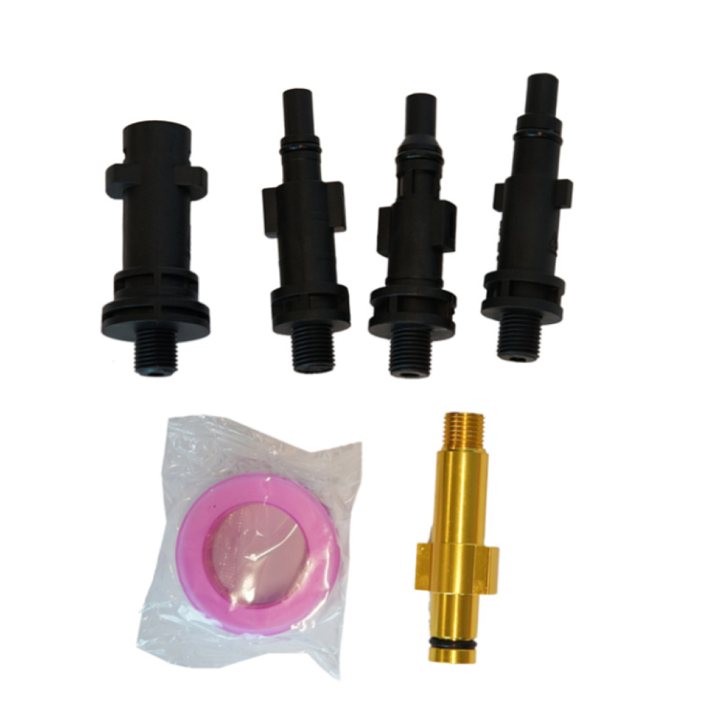 В комплекте несколько переходников, позволющих использовать пеногенератор с аппаратами большинства самых известных и популярных производителей моющей техники, продающихся в супермаркетах и специализированных магазинах вашего города
