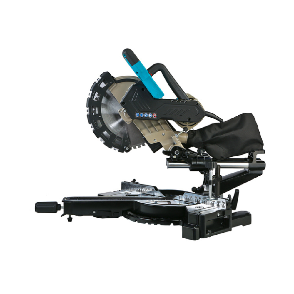 Функция плавного пуска ограничивает стартовые нагрузки и вибрации в целях продления срока службы инструмента. Механизм протяжки пыльной головки расширяет диапазон размеров обрабатываемой заготовки, а фронтальное расположение направляющих разрешает установку модели непосредственно возле стены. Надежный контроль над торцовочной пилой предоставляет эргономичная D-образная рукоятка.
