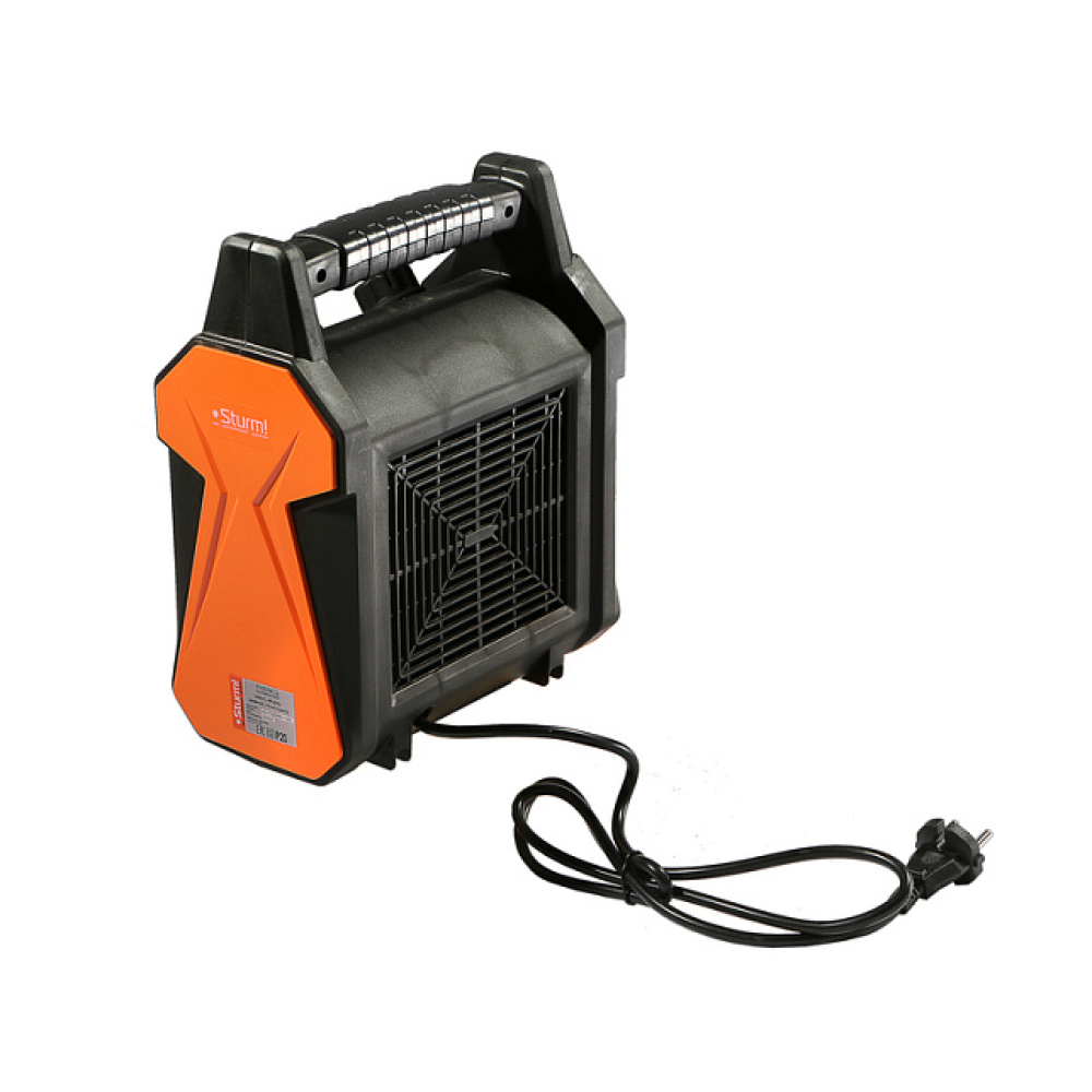 Sturm FH3034CQ — компактный и эргономичный тепловентилятор мощностью 3 кВт, и с производительностью воздушного потока 210 м3/ч. Предназначен для быстрого прогрева и поддержания комфортной температуры в помещениях площадью до 40 м2. Модель выполнена в современном, интерьерном дизайне, обладает небольшими габаритными размерами, и массой. Ключевая особенность тепловентилятора Sturm FH3034CQ — наличие в конструкции металлокерамического нагревательного элемента, за счет большой площади теплоотдающей поверхности которого гарантируется быстрый нагрев. Для того, чтобы ускорить циркуляцию нагретого воздуха в помещении, модель оснащена встроенным вентилятором. Управление устройством осуществляется парой регуляторов, расположенных на верхней панели. С помощью одного регулятора пользователь выбирает необходимый режим работы из предусмотренных трех: вентиляция без нагрева / теплый обдув / горячий обдув. Назначение второго регулятора — управление настройкой термостата. Визуальному контролю включенного устройства способствует отдельный индикатор питания, размещенный на панели управления. Прибор оснащен защитой от перегрева, а также имеет специальный датчик опрокидывания, отключающий питание в случае падения. Для удобства перемещения тепловентилятора с места на место, предусмотрена прочная рукоять.