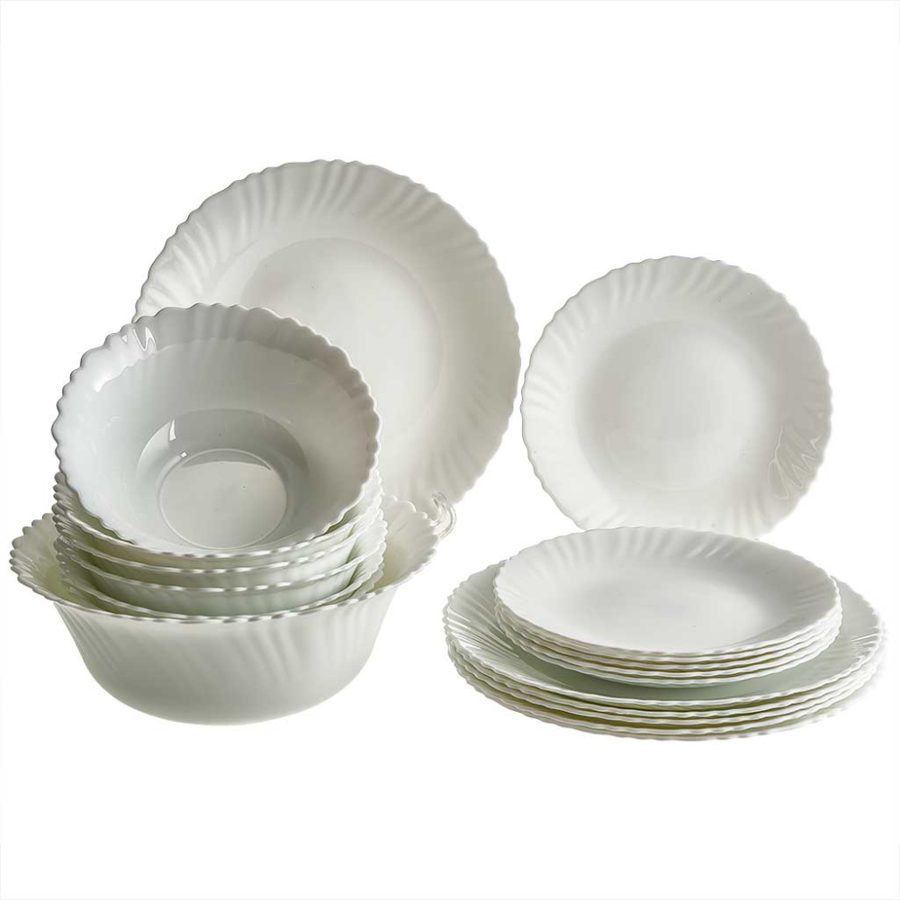 - Набор столовый из белой термостойкой стеклокерамики с волнистым краем