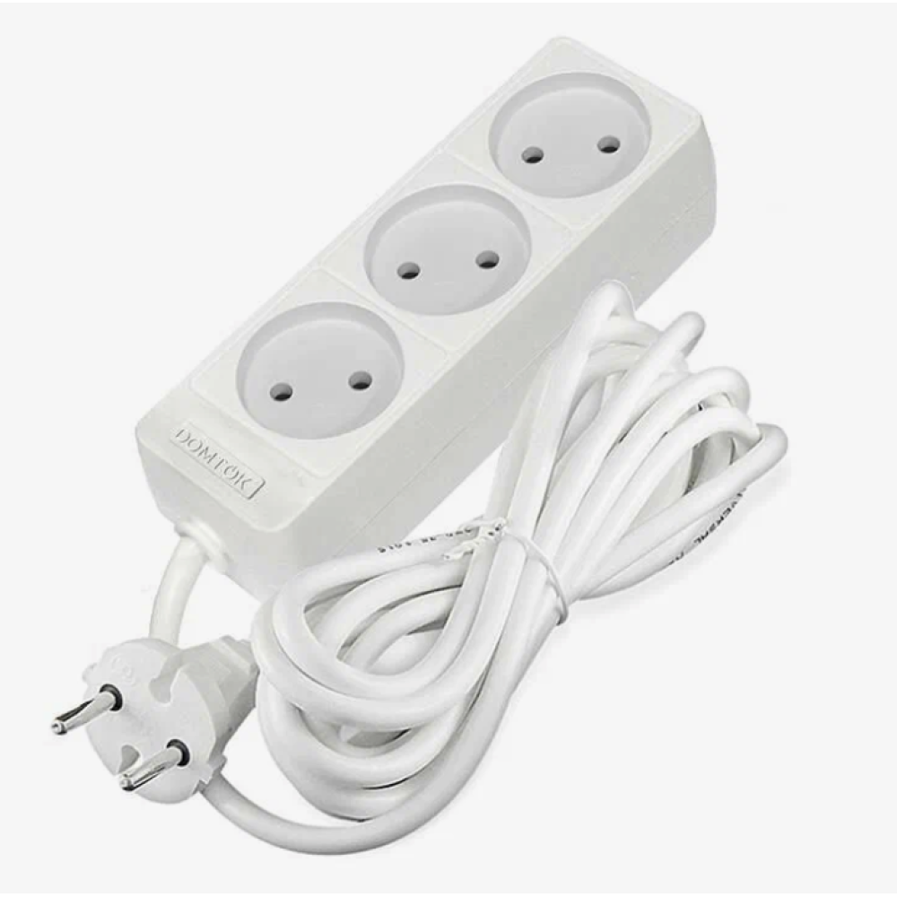 Удлинитель бытовой DOMTOK (ЛИДЕР) 3 гнезда, ПВС 2*0,75, 2,2кВт, б/з 3м