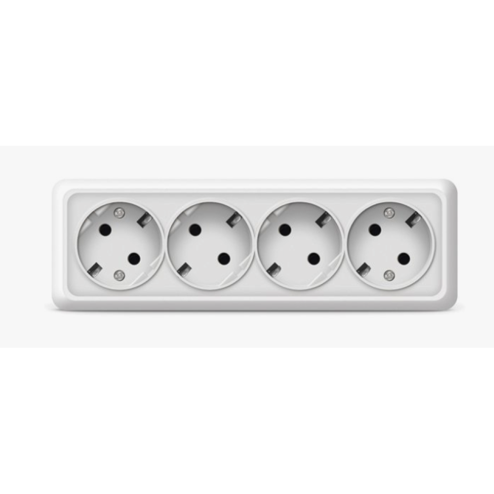 Розетка четырехместная "UNIVersal" серия "Олимп" с/з, о/у, 16А, 220В, белая (еврослот)