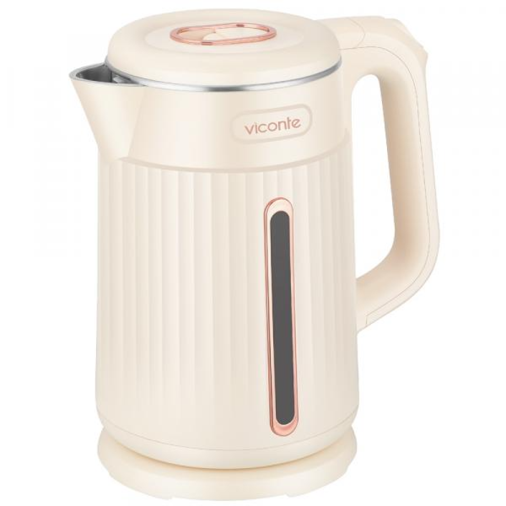 Электрочайник, 2200 Вт, 1,8 литра, закрытый нагревательный элемент, ВОЗМОЖНОСТЬ ВРАЩЕНИЯ ЧАЙНИКА НА 360°, корпус с двойными стенками из высококачественной нержавеющей стали и пластика, световой индикатор работы, автоматическое