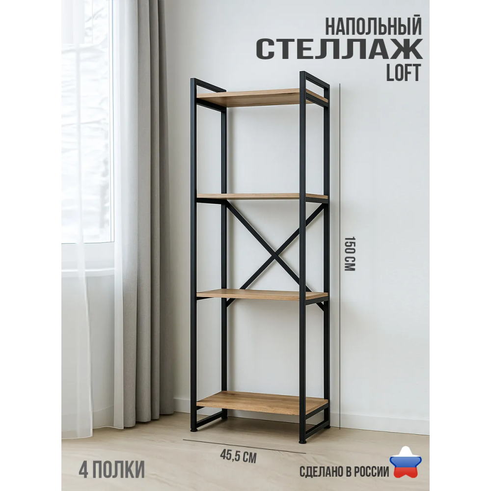 Компактный узкий мебельный мини стеллаж в 4 секции шириной 45,5 см и глубиной 33 см не занимает много места, прекрасно будет смотреться в маленьком коридоре или прихожей дома, в интерьере гостиной, в гардеробной для вещей, в торговом магазине для одежды, в кладовке для банок, в ванной и туалете, в комнате и гостинной. Впишется на балконе и лоджии, мебель на кухне для хранения кухонной посуды или кастрюль. Современная интерьерная мебель в стиле лофт придаёт особый шарм в спальне, а универсальная расцветка позволит установить вертикальный стеллаж loft в кабинете офиса под офисные документы в папках или установить принтер. Отличный вариант для дачи под рассаду, этажерка на пол для комнатных цветов и растений. Железные ножки пристенной стеллажной системы защищены заглушками для предотвращения царапин на полу. Доставляется в коробке, потребуется сборка, запчасти и инструкция предоставлены в комплекте. Для удобства и быстроты сборки рекомендуем использовать шуруповерт.
